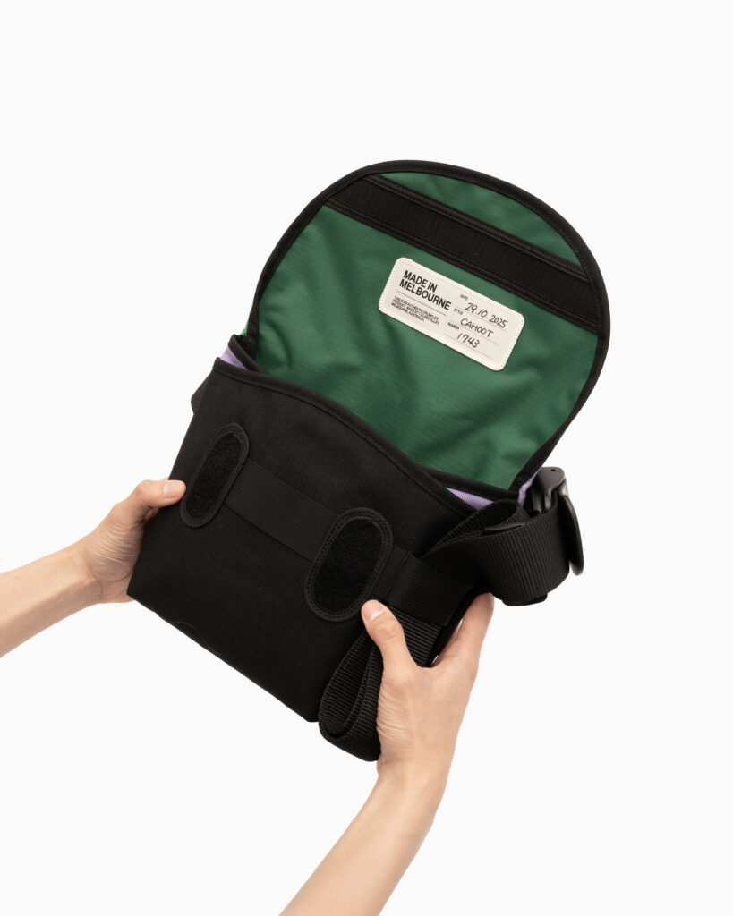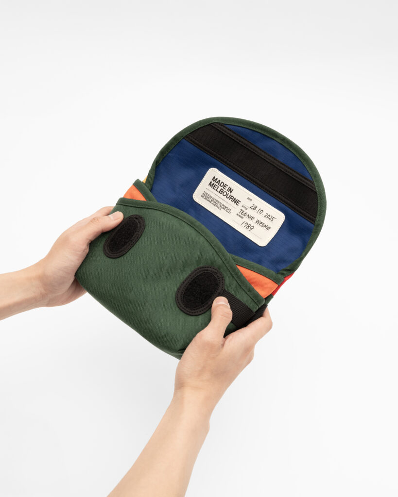 CRUMPLER, the Melbourne-born bag brand founded in 1995 by three bike messengers, was first stocked overseas by BEAMS in 1998. Now, nearly 30 years later, they return to Japan with a collaboration! The ‘MADE IN MELBOURNE’ lineup, entirely manufactured at the Melbourne factory, comprises four models: the medium messenger bag ‘BARNEY’, the crossbody bag “CAHOOT”, the small crossbody bag ‘TEENIE WEENIE’, and the new zip-up wallet ‘MIRAGE’. The vibrant, colourful materials feature an eco-conscious ripstop fabric combining recycled PET bottles, pre-consumer waste, and 1000D Cordura nylon. It’s reassuring to know it can be repaired even after tough, heavy use.